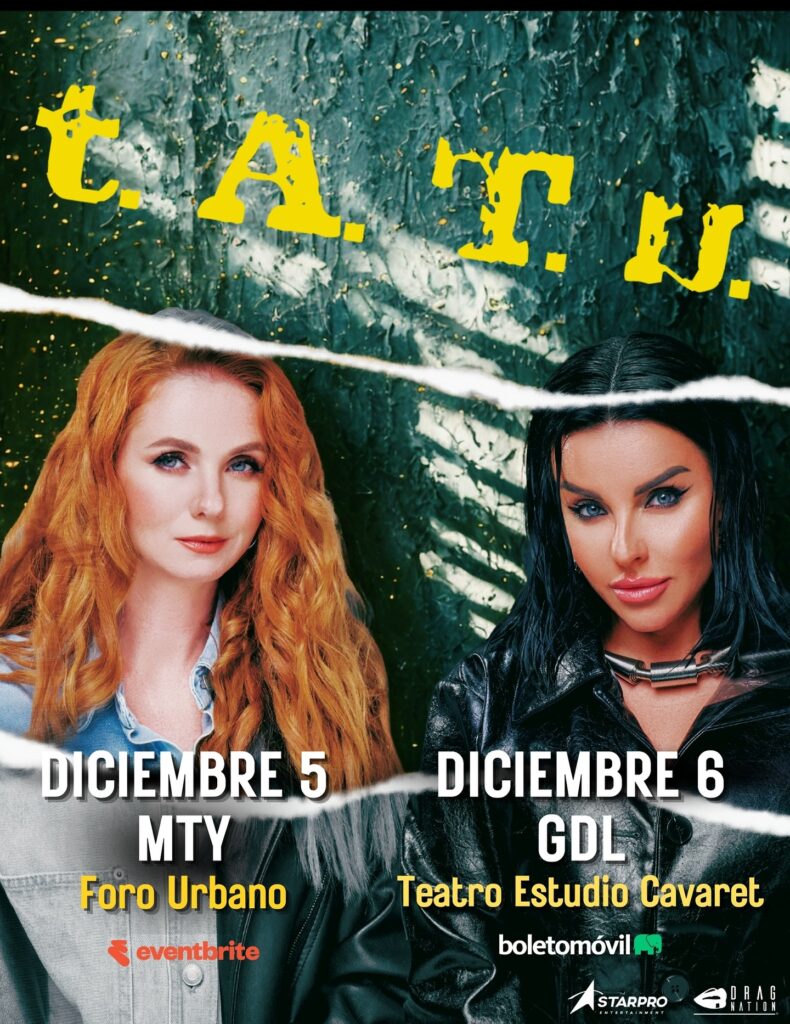 El dúo ruso más icónico de los 2000’s, t.A.T.u. vuelve a México para revivir la nostalgia, la energía y los himnos que marcaron a toda una generación. Las intérpretes de éxitos como “All The Things She Said”, “Not Gonna Get Us” y “All About Us” ofrecerán un inolvidable y exclusivo show el próximo 6 de diciembre en Teatro Estudio Cavaret de Guadalajara.